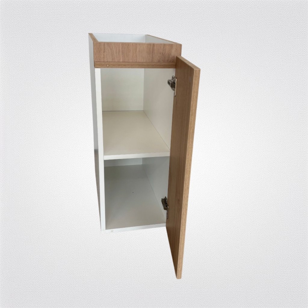 Módulo bajo mesada fabricado en melamina de 18 mm, sistema de ensamble con tornillos autoperforantes que garantizan una estructura firme (con opción de agregado de cachetes laterales para terminación sin tornillos a la vista). Diseñado para ofrecer durabilidad, precisión y una instalación rápida y segura.
